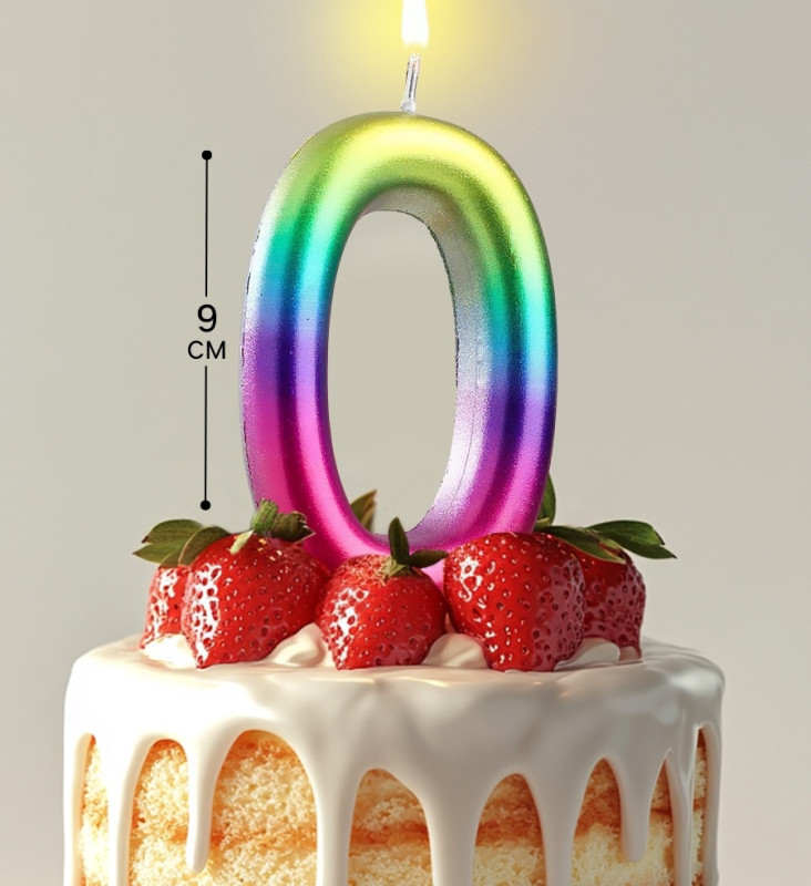 5311067 Радужная свеча ГИГАНТ в торт "Цифра 0" Высота 9 см.