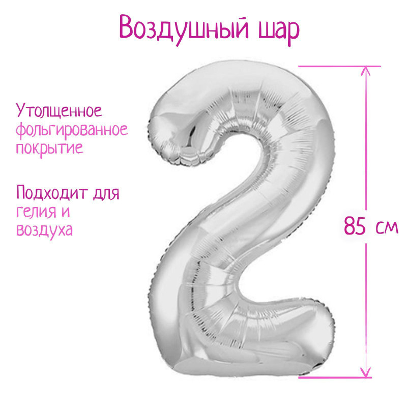 7089617 Серебристая фольгированная "Цифра 2" Высота 85 см.