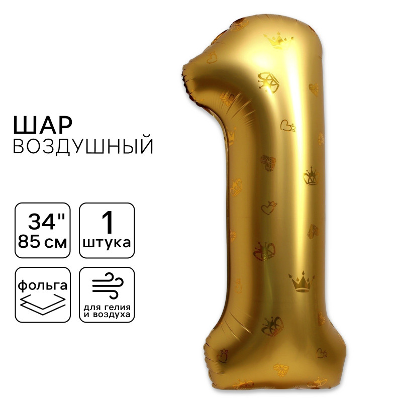 9081206 Золотая с коронами фольгированная "Цифра 1" Высота 85 см.