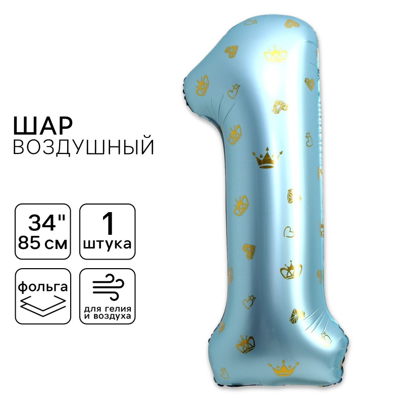 9081207 Голубая с коронами фольгированная "Цифра 1" Высота 85 см.
