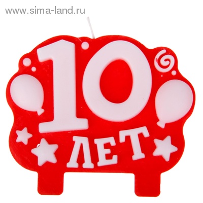 1068644 Свеча в торт "10 лет.Шарики" красный воск