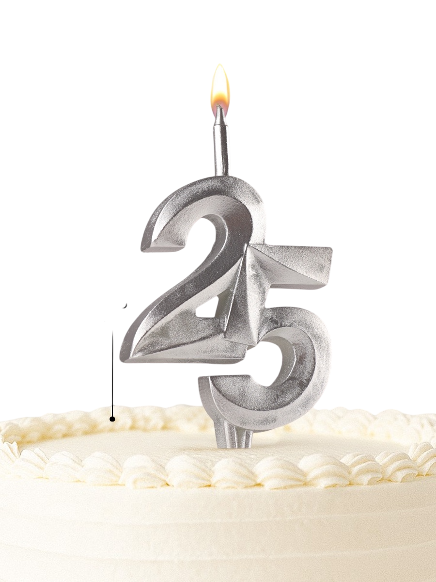 10873648 (3775) Двойная свеча в торт "Цифра 25 лет" Цвет серебро
