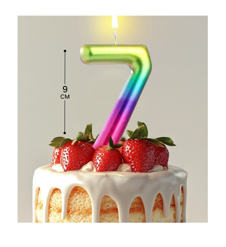 5311074 Радужная свеча ГИГАНТ в торт "Цифра 7" Высота 9 см.