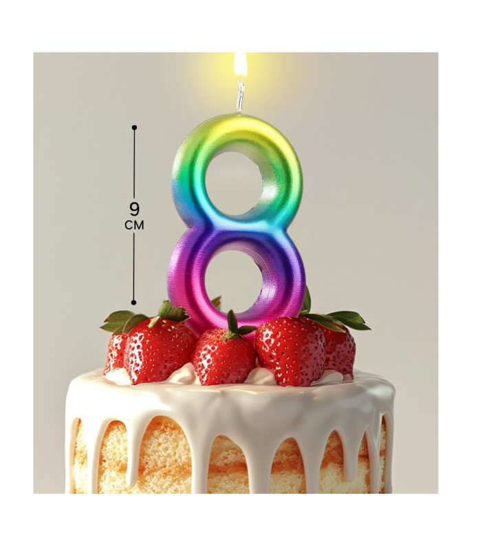 5311075 Радужная свеча ГИГАНТ в торт "Цифра 8" Высота 9 см.