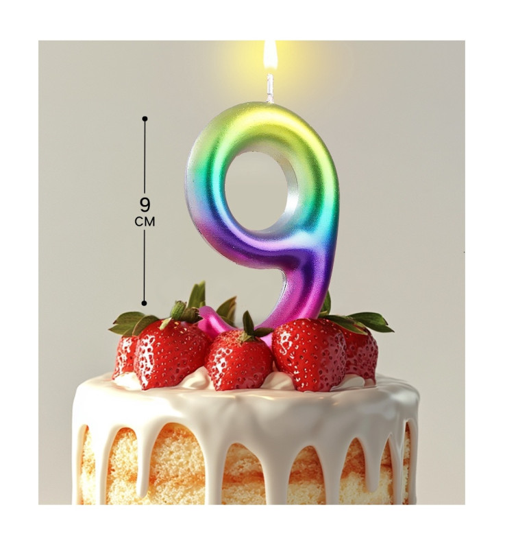 5311076 Радужная свеча ГИГАНТ в торт "Цифра 9" Высота 9 см.