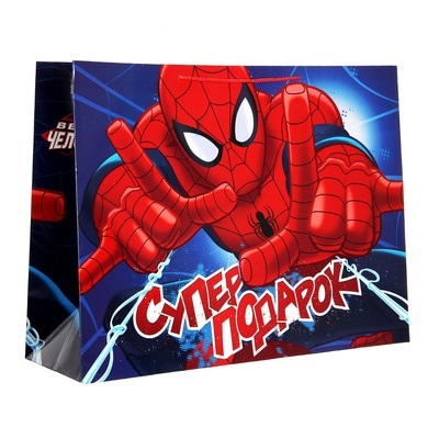 1123135 Пакет ГИГАНТ горизонтальный " Супер подарок от Человека Паука" Размер 60 х 45 х 20 см.