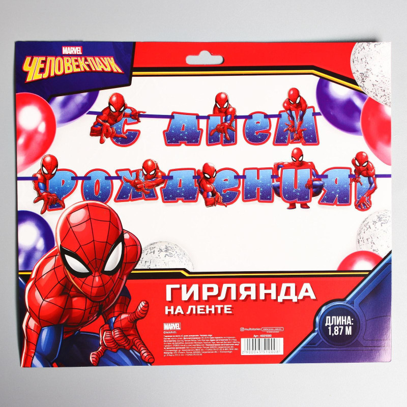 4551000 Гирлянда на ленте "С Днем рождения! Человек Паук" Длина 187 см.