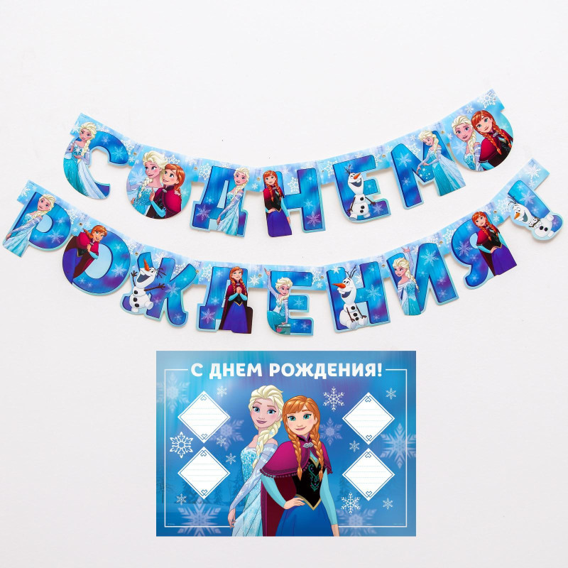 5105985 Набор "Холодное сердце": Гирлянда "С Днем рождения!" Длина 210 см. + плакат 40 х 60 см.