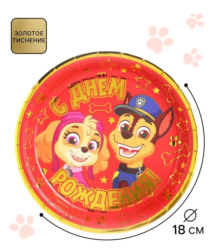 10139412 Набор тарелок с тиснением "С Днем рождения! Щенячий патруль" (6 шт.) D 18 см.