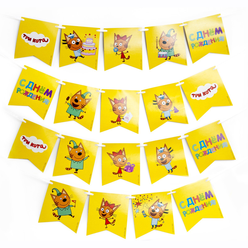 7311806 (ДБ 6014891) Гирлянда - флаг на ленте "С Днем рождения! Три кота" Длина 300 см.