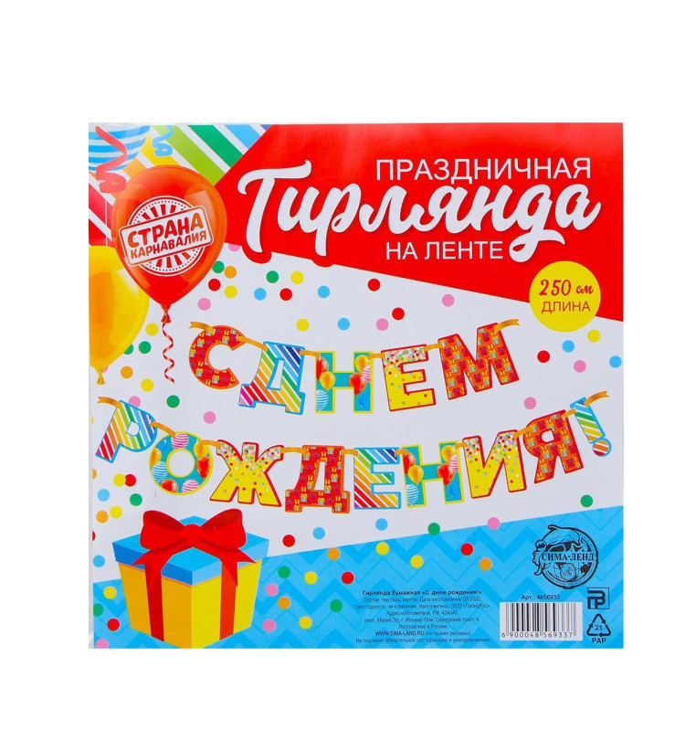 4856933 Гирлянда на ленте "С Днем рождения! Шарики" Длина 250 см.