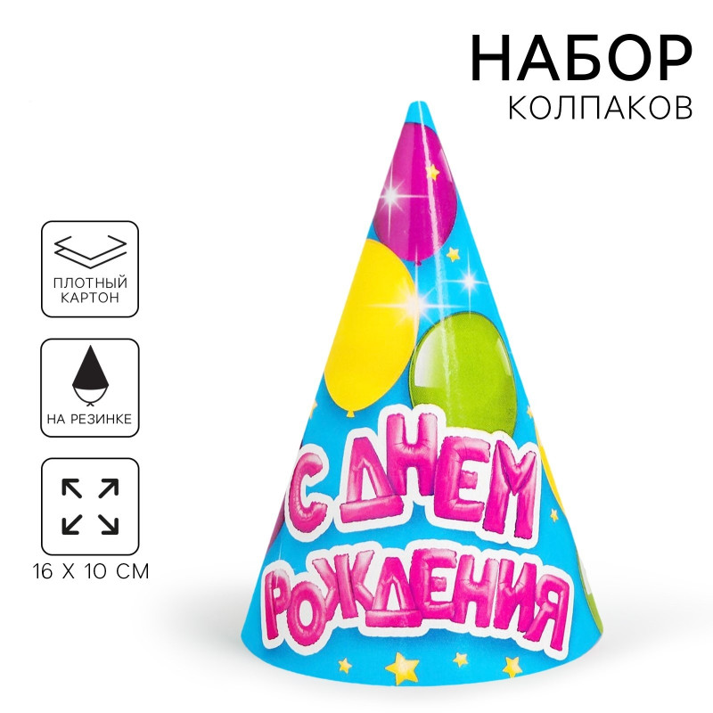 2772585 Набор ярко голубых колпаков "С Днем рождения! Воздушные шарики" (10 шт.)