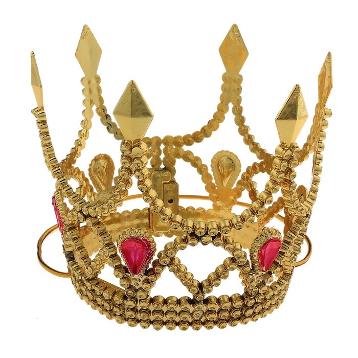 319557 Золотая корона малая для принцессы на резинке.Пластмасса