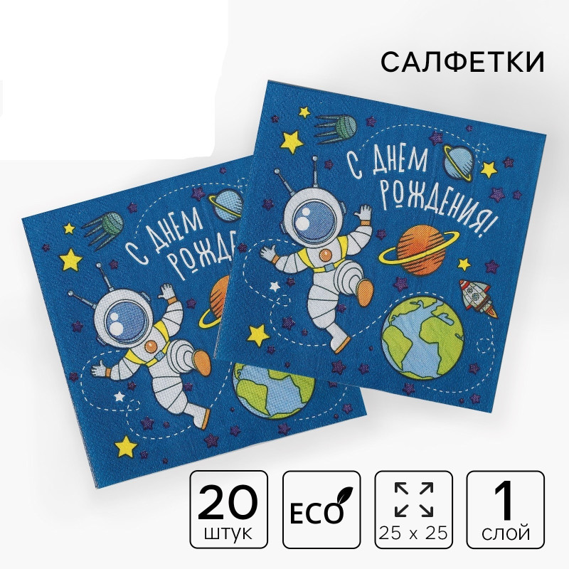 Главная / Каталог / Космос / 4669374 Набор темно синих салфеток "С Днем рождения! Космос" (20 шт.) Размер 25 х 25 см.