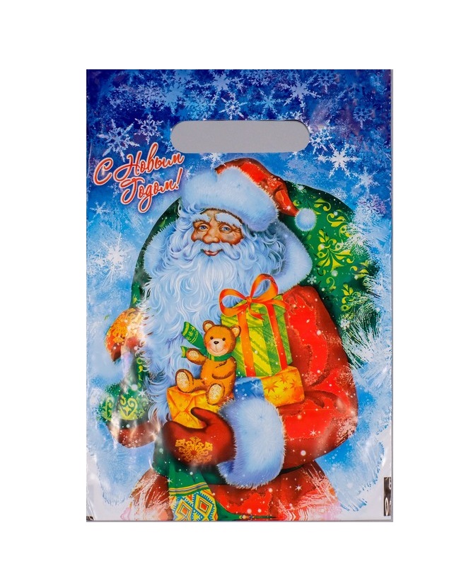 3856204 Пакет синий "С Новым годом! Дед Мороз с подарками" Размер 20 х 30 см. Плотность 30 мкм
