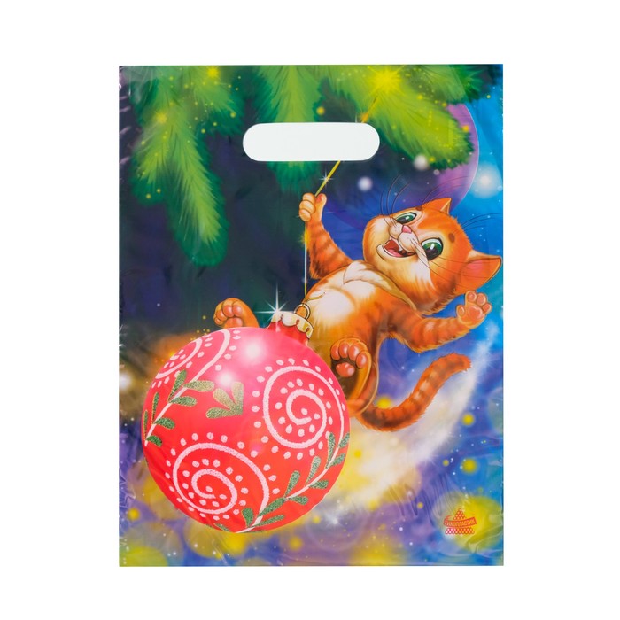 9201920 Пакет "С Новым годом! Кот на шарике" Размер 22 х 30 см. Плотность 30 мкм.