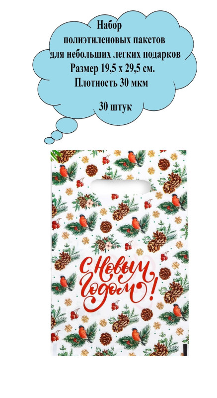 Главная / Каталог / Новый год / WW 9748163/1 Набор новогодних пакетов (30 шт.) Размер 19 х 25 см. Плотность 30 мкм