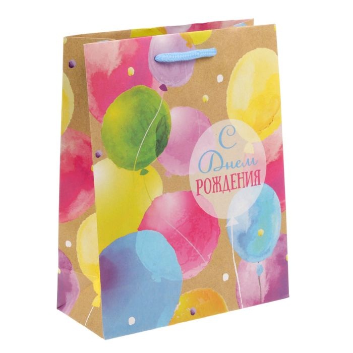 1499505 Крафт пакет "С Днем рождения! Шарики!" Размер 18 * 23 см.
