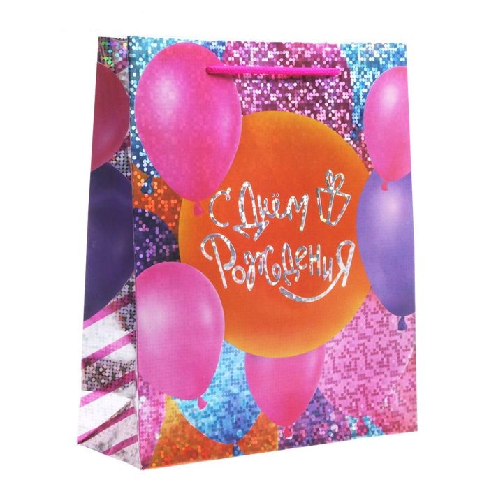 1857240 Пакет подарочный голограмма "С Днем рождения! Воздушные шарики" Размер 23 * 27 см.