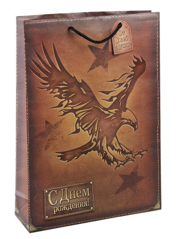 740844 Пакет подарочный "С Днем рождения! Летящий орел" Размер 26 *32 см.