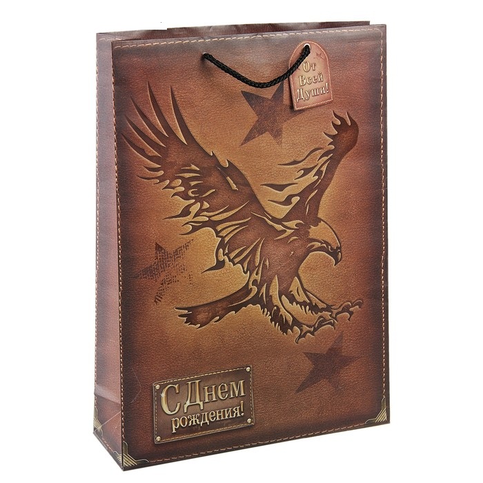 740890 Пакет подарочный "С Днем рождения! Летящий орел" Размер 18 *23 см.