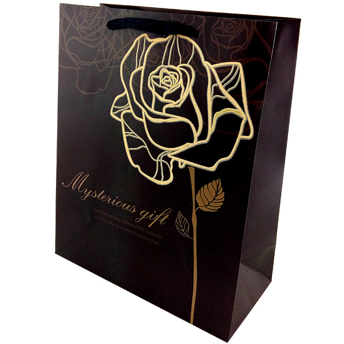 БР 0096-ВL Пакет подарочный "Роза на черном фоне" Размер 26 * 32 см.