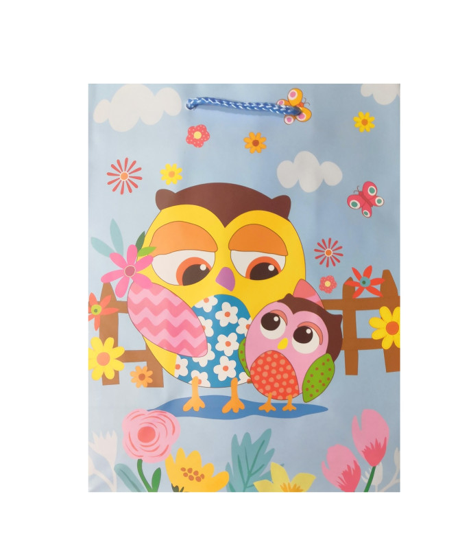 КП 900100/2 Подарочный пакет "Совушки" с крученными ручками Размер 18 х 23 см.