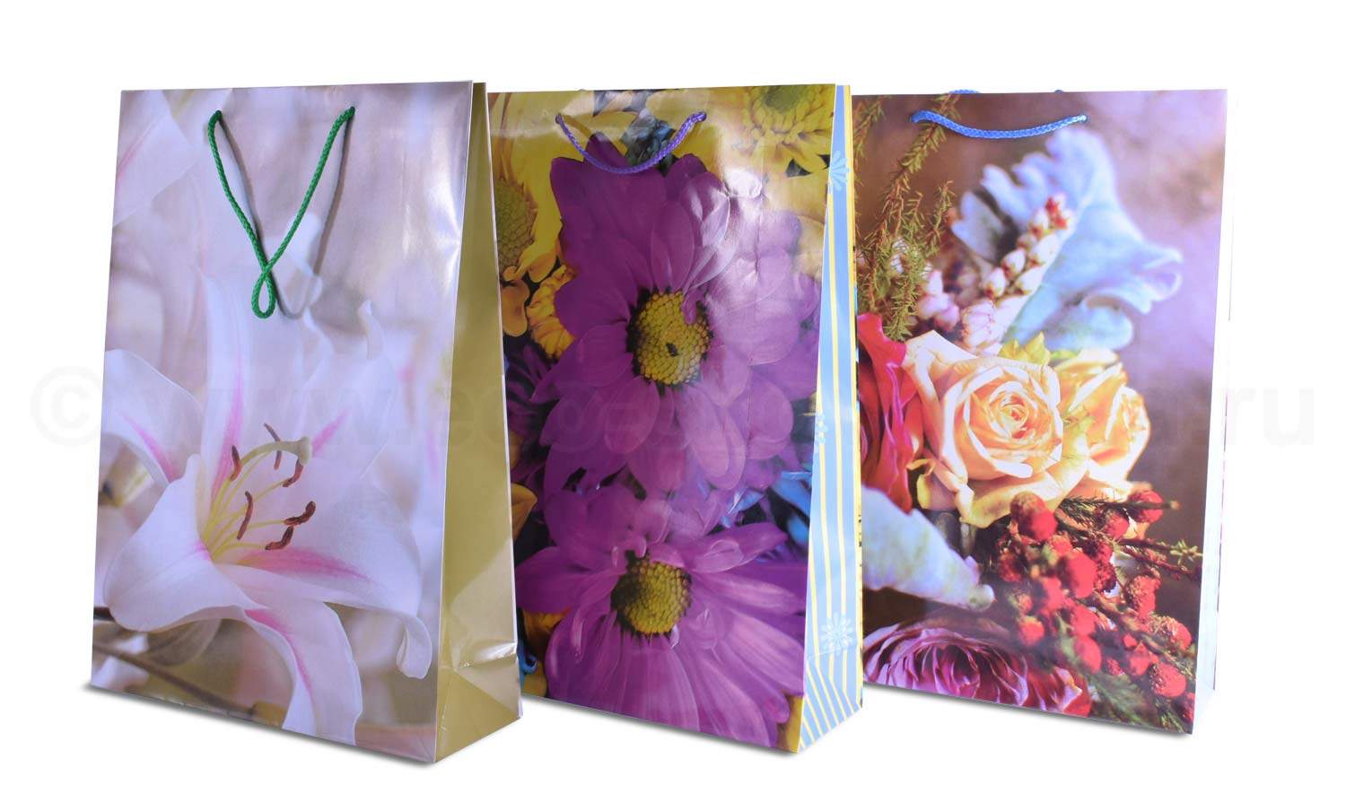 КП 900100 Пакет подарочный "Цветы ассорти" Размер 18 *23 см.