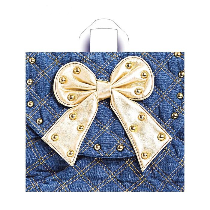 1097235 Пакет ПВД "Золотой бантик на джинсе" с ручками. Размер 34 * 40 см.