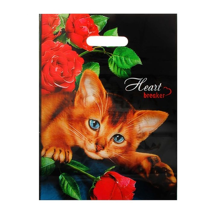 1633936 Пакет ПВД "Рыжий котик с голубыми глазками" Размер 30*40