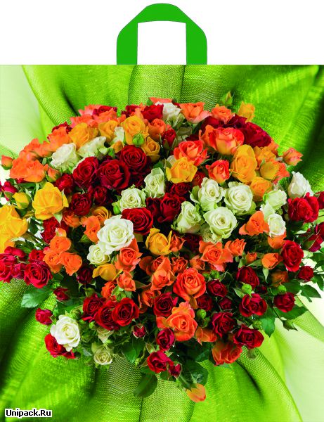 2327392 Пакет салатовый ПВД "Шикарный букет" с петлевой ручкой. Размер 42*44 см. Плотность 70 мкм