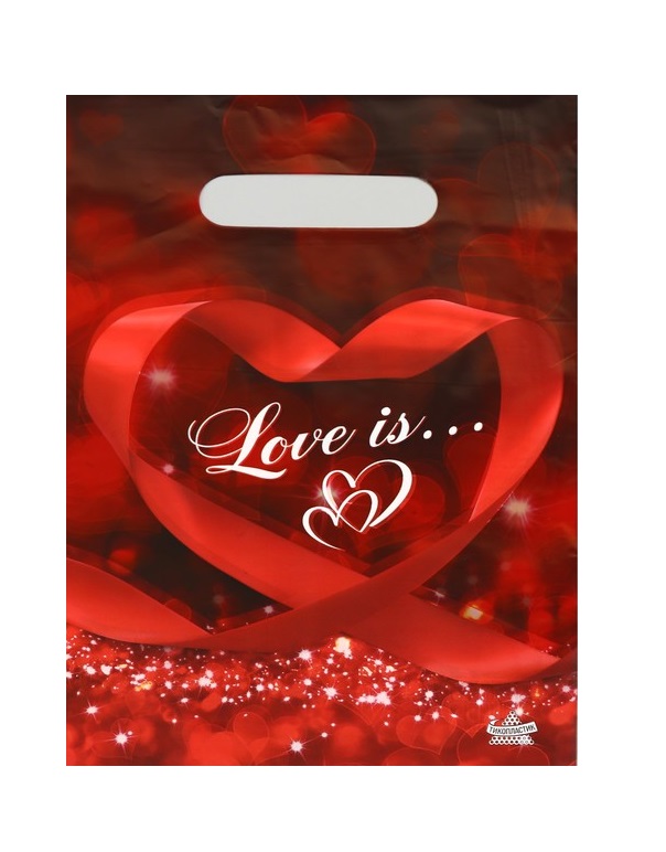 4166760 Пакет бордовый "Love is..." Размер 19,5 х 29,5 см. Плотность 30 мкм.