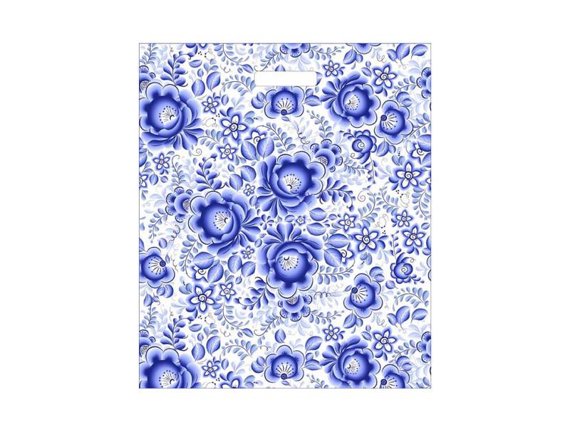 КП 30051 Пакет ПВД "Узор Гжель" Размер 38 * 45 см. Плотность 60 мкм