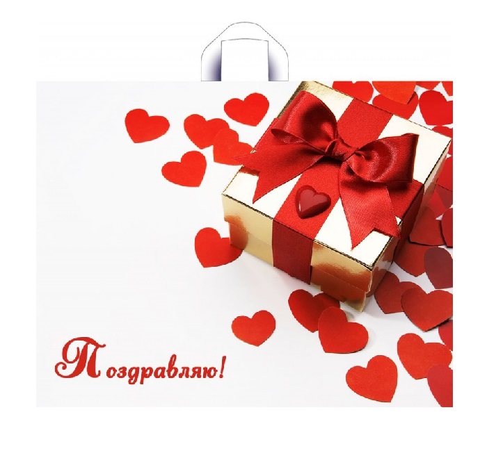 КП 33144 Пакет ПВД "Поздравляю! Красные сердца" Горизонтальный.Размер 70*55 см.