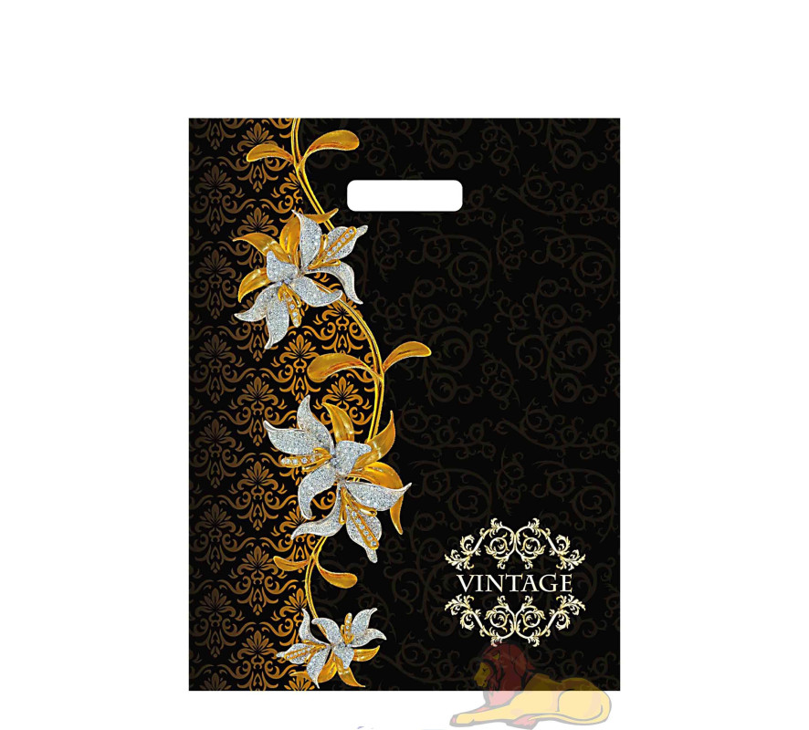 КП 46164 Пакет ПВД "Черно-золотой винтаж" Размер 30*40 см