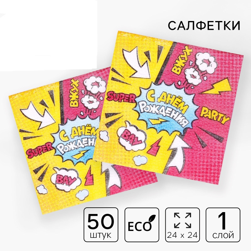 Главная / Каталог / Салфетки / 5067344 Набор салфеток "С Днем рождения!" (50 шт.) Размер 25 х 25 см.