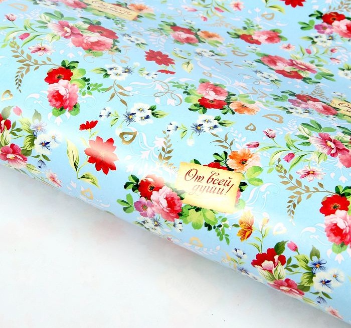 114402 Бумага упаковочная "От всей души!" Размер 70*100 см. Глянцевая