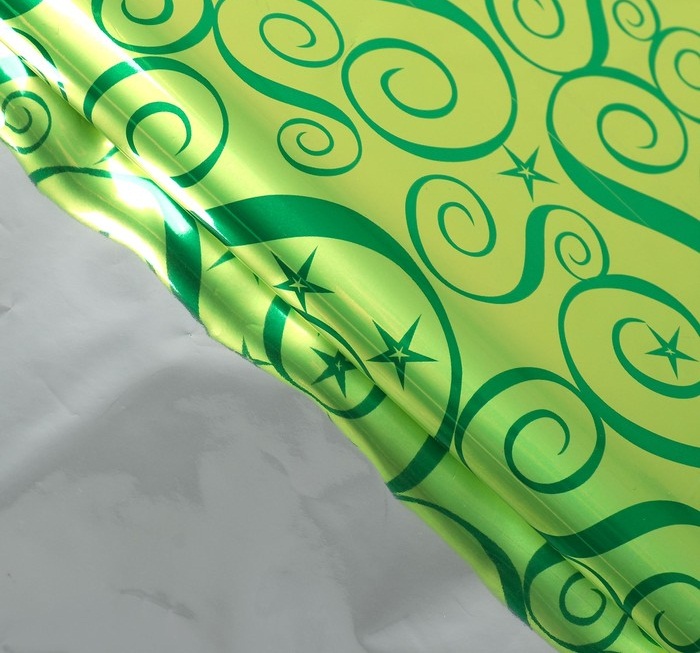 1212027 Бумага голографическая "Зеленый узор на салатовом" Размер 70*100 см.
