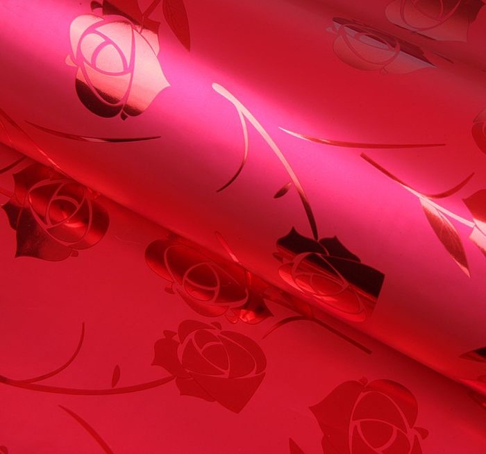 1212031 Бумага голографическая "Цветы на красном" Размер 70*100 см.