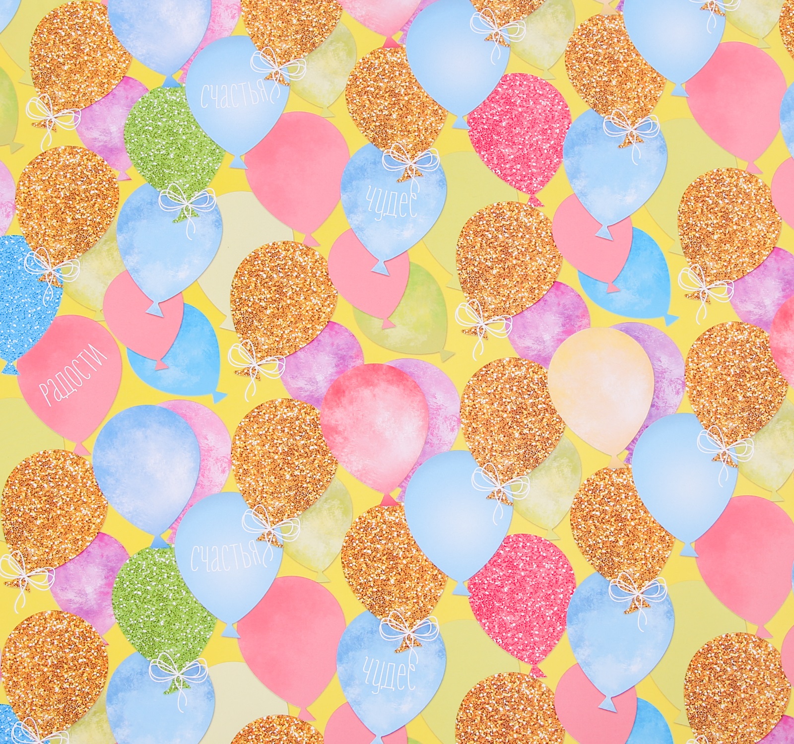 2739451 Глянцевая упаковочная бумага "Чудес! Золотые шары" Размер 70 х 100 см.