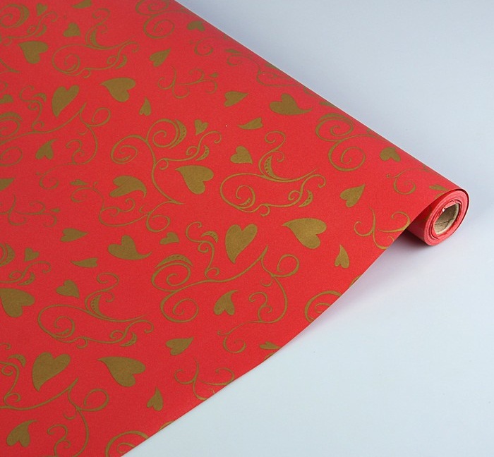 2966359/1 Бумага упаковочная "Золотые сердца на красном" Двухсторонняя.Размер 53 * 70 см.