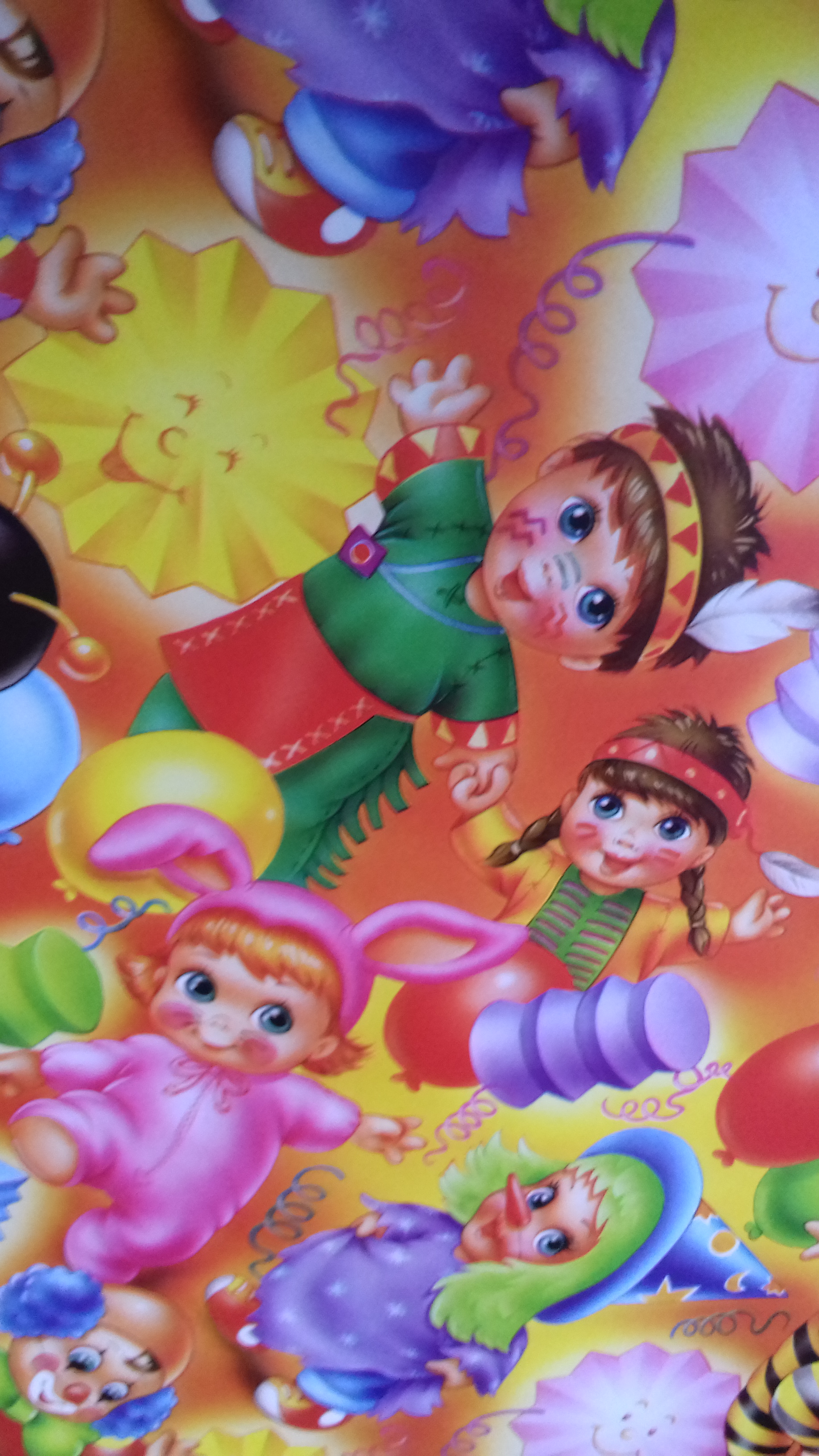 КП 1247 Бумага упаковочная "Дети на празднике" Размер 70*100 см.Матовая