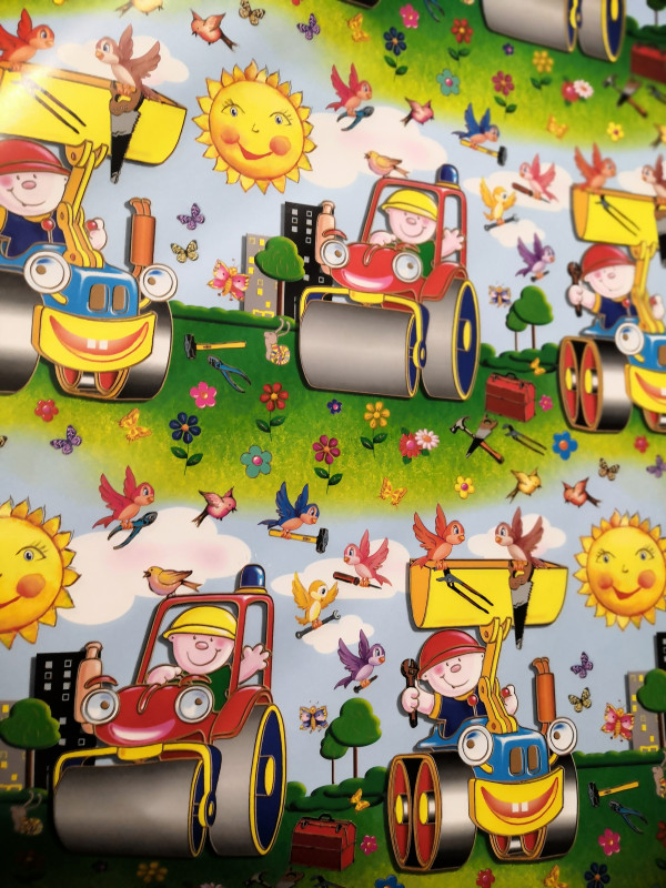 КП 1251 Бумага упаковочная "Мальчик на машине" Размер 70*100 см.