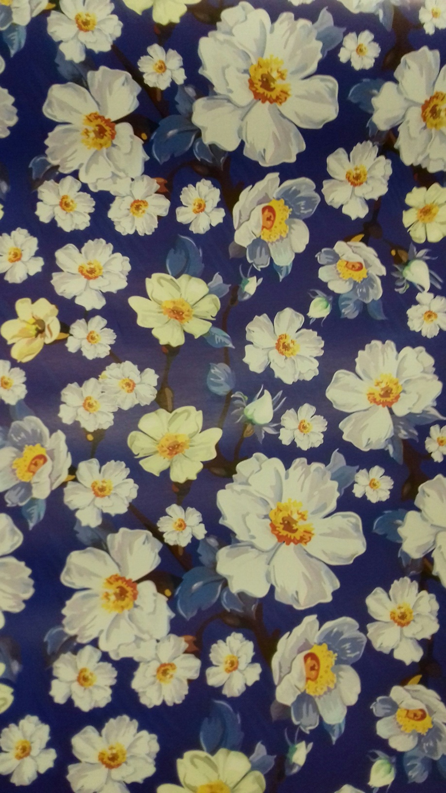 КП 1286 Бумага упаковочная "Ромашки на синем фоне" Размер 70*100 см.Матовая