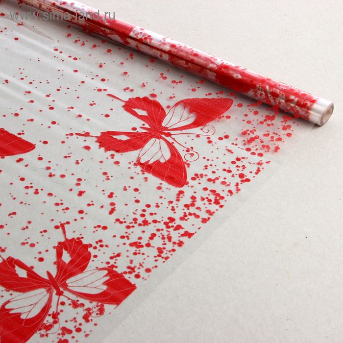 1112230 Упаковочная пленка "Красные бабочки" Ширина 70 см. Плотность 40 мкм