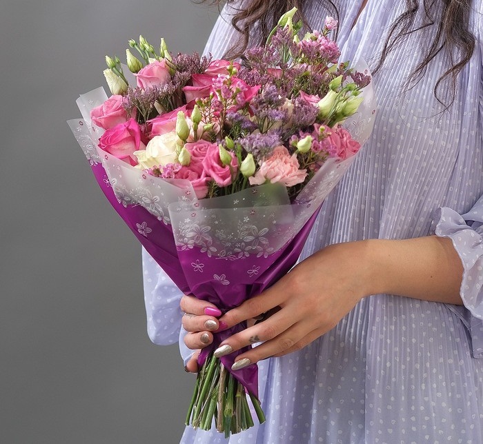2479537 Фиолетовая пленка для упаковки с прозрачными краями.Размер 60 * 60 см.