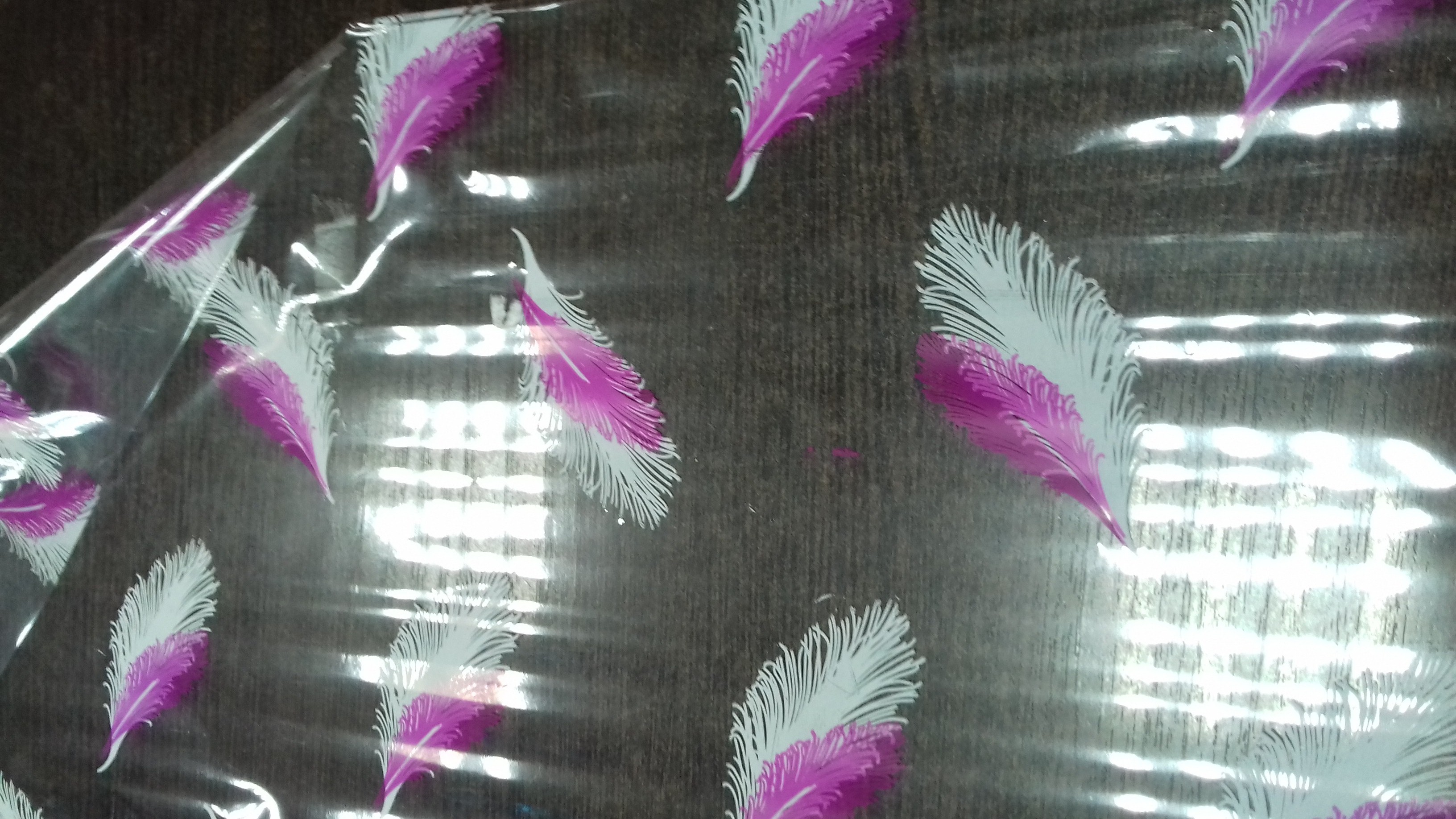 КП 2023 Упаковочная пленка "Перышки бело-малиновые" Ширина 70 см. Плотность 40 мкм