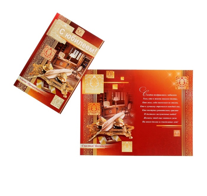 1197954 Открытка "С Юбилеем! Перо" Тиснение фольгой Формат А4