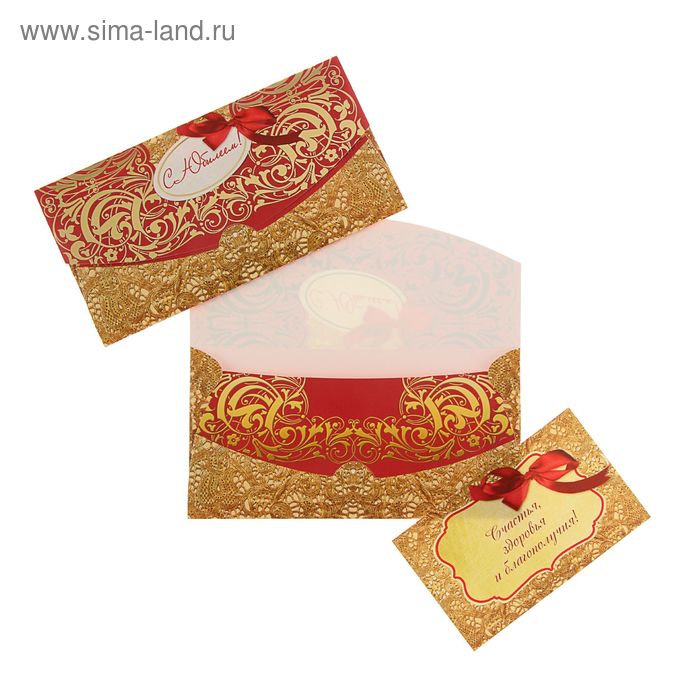 Главная / Каталог / Юбилей / 1311885 Конверт для денег "С Юбилеем! Красный бантик на золотом фоне" Тиснение золотом