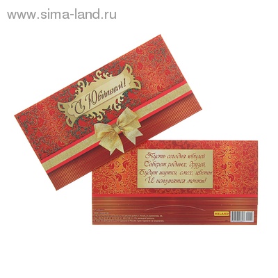 Главная / Каталог / Юбилей / 1326010 Конверт для денег "С Юбилеем! Золотой бантик на красном фоне" Тиснение золотом